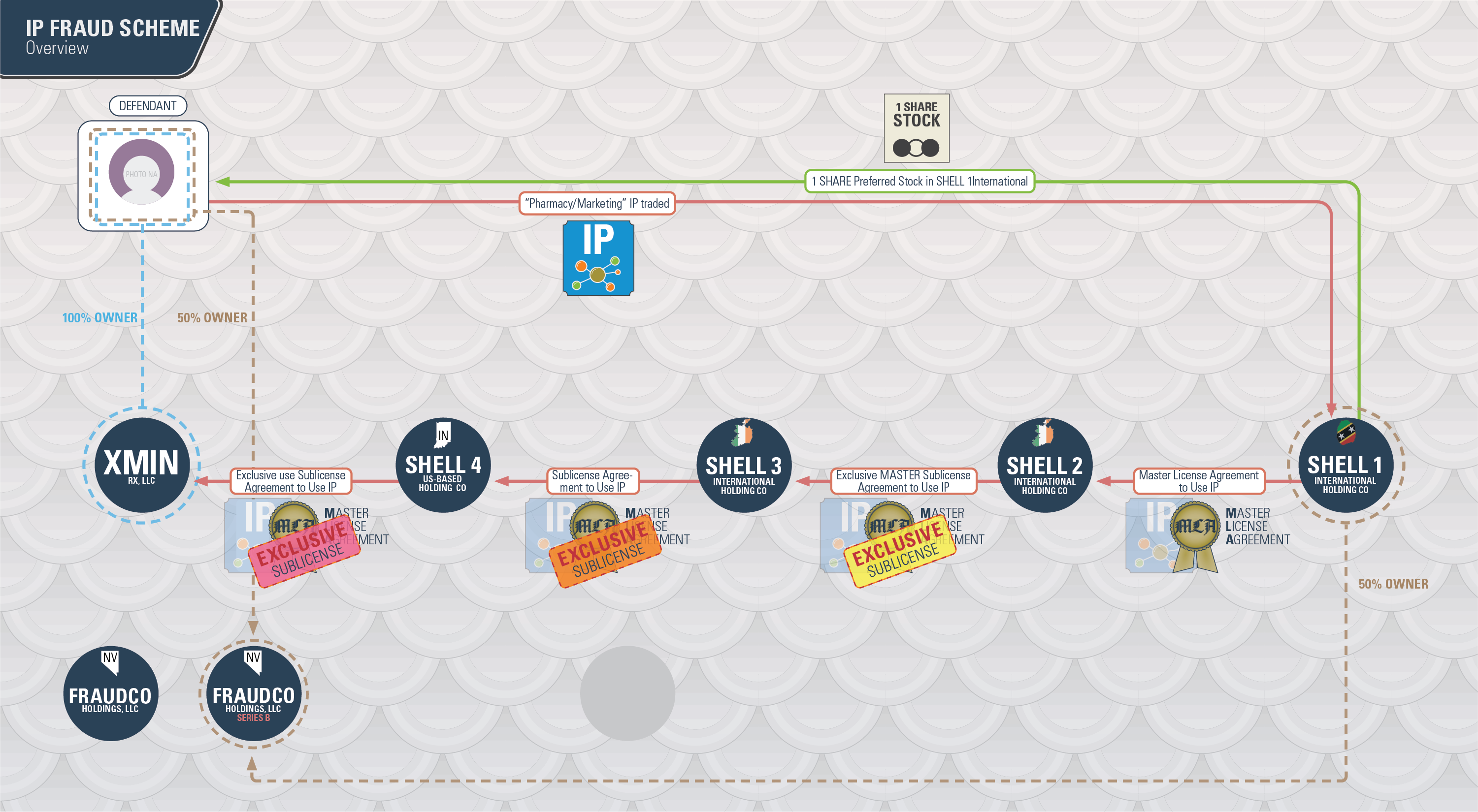 An overview of how a license for a pharmaceutical compound was used to conceal ownership and defraud Medicare